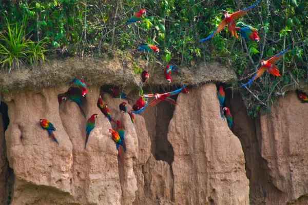 - Excursion to the Chuncho Clay Lick, one of the most remarkable wildlife experiences in the Amazon, where dozens of macaws, parrots, and parakeets gather at dawn.