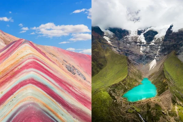 [icon name="star" style="regular" class="" unprefixed_class=""] [icon name="star" style="regular" class="" unprefixed_class=""] [icon name="star" style="regular" class="" unprefixed_class=""] [icon name="star" style="regular" class="" unprefixed_class=""] [end-div]Explore dois dos destinos mais deslumbrantes de Cusco em um único passeio de aventura na natureza: a Lagoa Humantay, com suas águas azul-turquesa aos pés do Monte Salkantay, e a impressionante Montanha Arco-Íris (Vinicunca), famosa por seus tons avermelhados, ocres e verdes que pintam a Cordilheira dos Andes. Esta experiência de 2 dias e 1 noite conecta você com a magia das paisagens do alto Andes e oferece vistas panorâmicas únicas. Passeio pela Lagoa Humantay e Montanha do Arco-Íris 2 dias 1 noite.