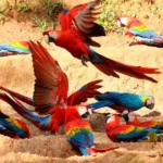 - Já na collpa, nos prepararemos para apreciar os araras de diferentes cores.