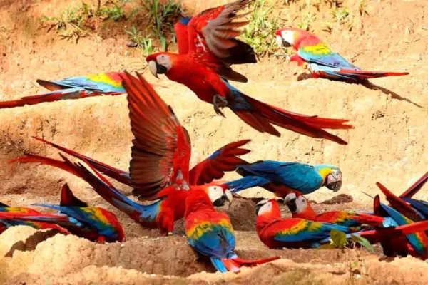 Selva 4 Dias em Tambopata, descubra a fascinante Reserva Nacional Tambopata, em Madre de Dios, um paraíso natural localizado no sudeste do Peru, com um clima quente e húmido durante todo o ano. Nesta excursão de 4 dias e 3 noites, mergulhe na selva amazónica explorando as suas paisagens mais vibrantes e ricas em biodiversidade. Um dos momentos mais marcantes será a visita à Collpa Chuncho, um espetáculo natural onde todas as manhãs se reúnem dezenas de araras, papagaios e outras aves, oferecendo um show de cores e sons incomparável.
